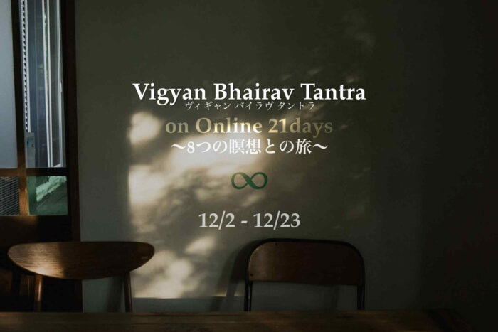 〈タントラライフ ジャパン新企画〉 『ヴィギャン・バイラヴ・タントラ on Online 21days ~8つの瞑想との旅~』 今回、オンラインのみの実験的な試みとして、日々の瞑想を深め、日常の中に瞑想が根付くようにと企画しました。 21日間、ヴィギャン・バイラ... -